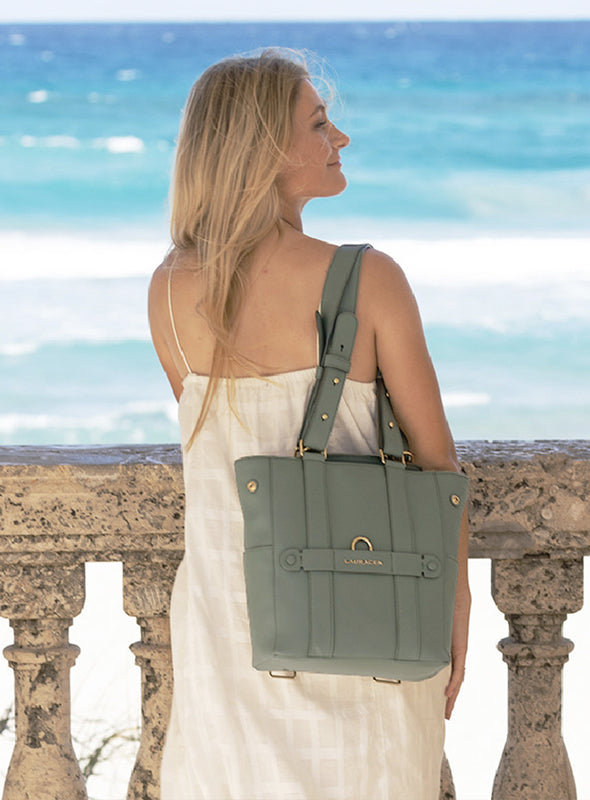 Because the collection originated from an equestrian “ringbag” and had to tolerate the true equestrian lifestyle, every piece had to be incredibly durable and functional. Our best-selling Convertible Backpack Totes can be worn multiple ways, as can our Belt Wallet Clutch, and also our wristlets. Our Classic Tote has a luggage strap on the back and you will find practical design features throughout LAURACEA. The collection includes waterproof leathers, and waterproof and stain resistant liners.
