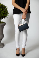 LAURACEA’s Wristlet is perfect for small essentials, day or evening. The strap can be configured for use as a wristlet or small clutch. The slim design allows for it to be comfortably handheld or attached inside any LAURACEA tote. Pair it with our Classic Tote for a perfect travel set. Gold plated hardware and logo, custom branded zipper pulls, Italian made zippers, and our waterproof and stain resistant liner merge quality, function and beauty in the LAURACEA Wristlet.